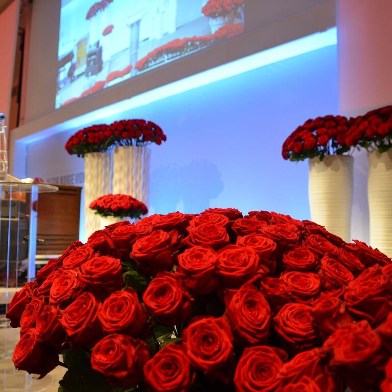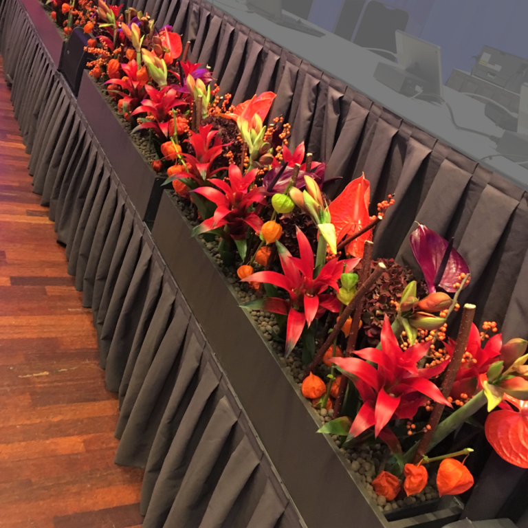 Gjennom mange år har vi samarbeidet med ulike medieselskap for levering av blomster til kurs, møter og konferanse. For mange av disse er behovet for bra TV - og mediebilder, vel så viktige som det visuelle uttrykket i salen. Vi er vant til å tenke på kameravinkler og mediebilder helt fra starten, da vi tegner og designer dekoren. Proporsjoner, kontraster, fargevalg og blomstersorter – alle detaljer er med prosessen.